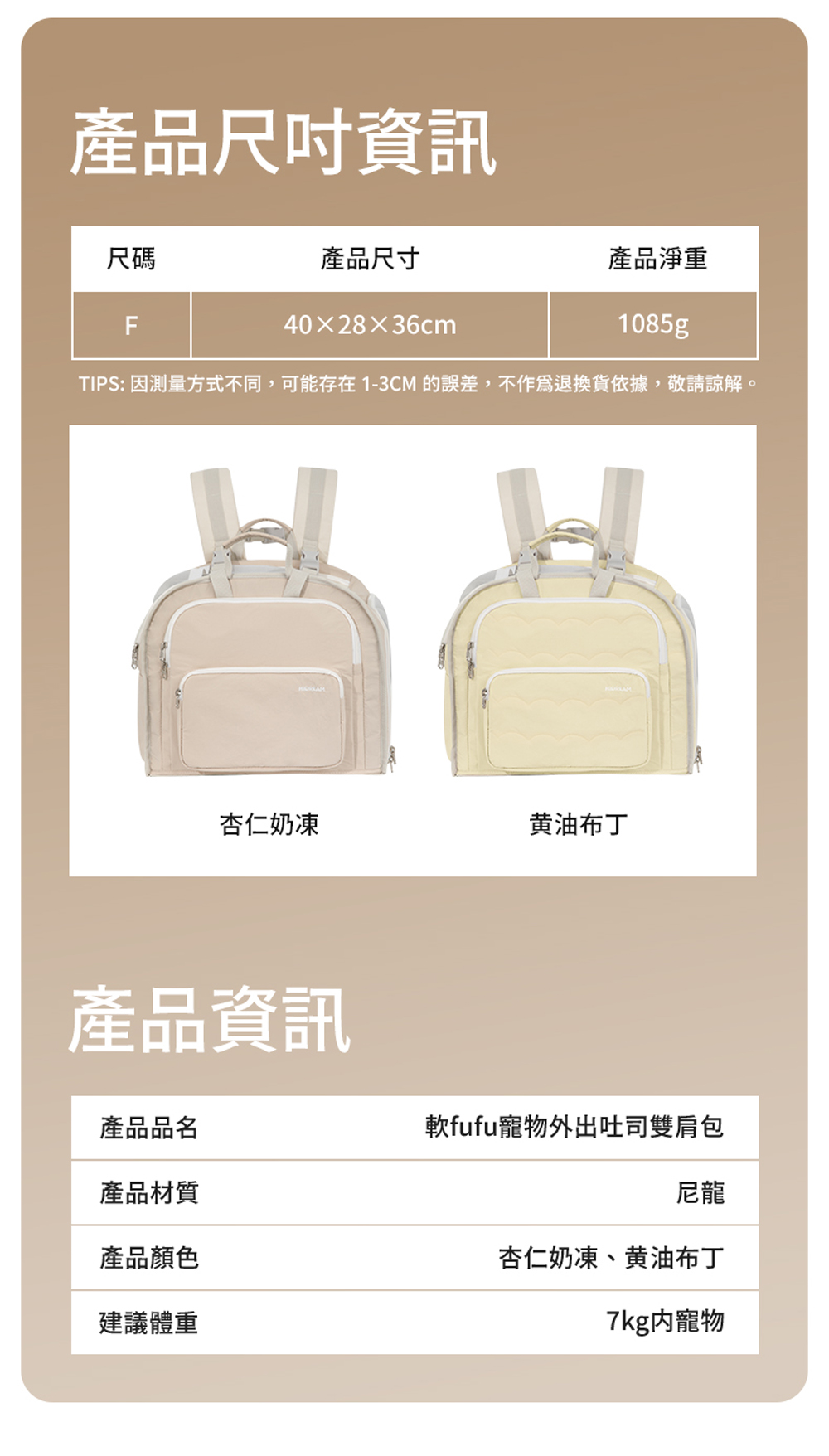 山谷軟FuFu系列外出包 - 吐司雙肩包 (兩色)